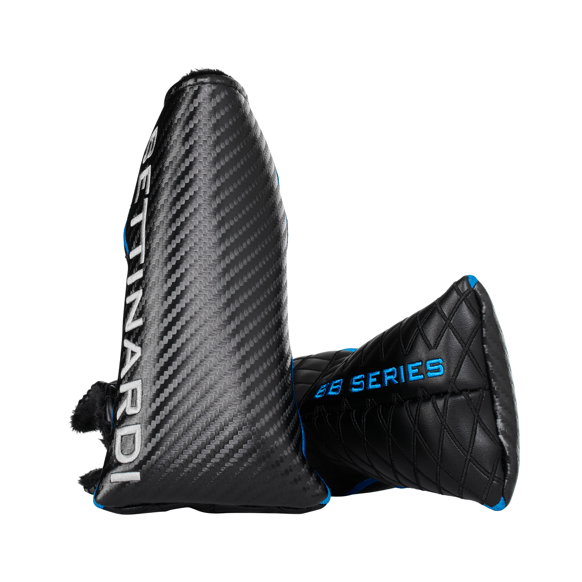 PREMIUM COMPONENTS Each BB Series putter comes paired with a Black PVD Tour Grade shaft, custom electric blue Lamkin Grip, and dual-constructed leather and carbon fiber BB Series magnetic headcover.
