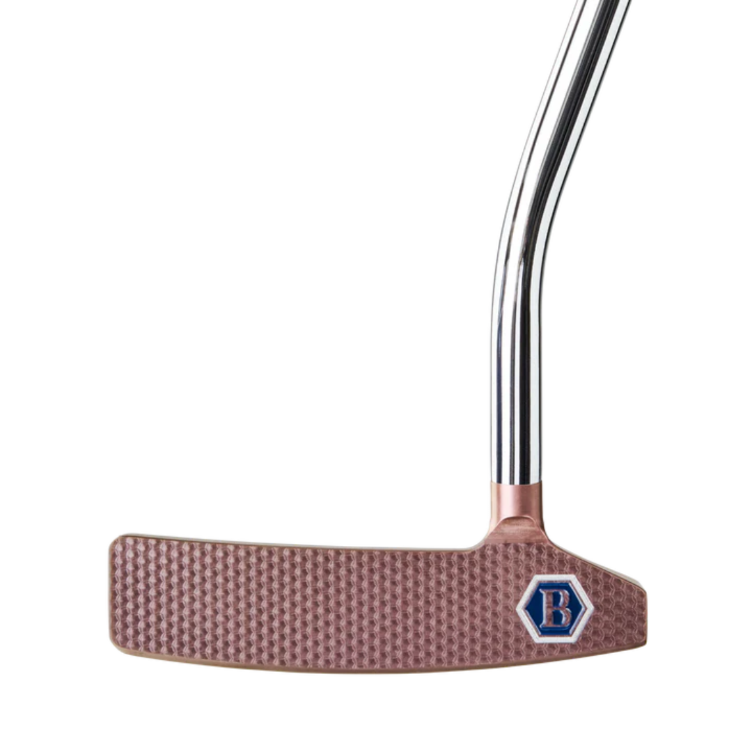 Engineered for optimal balance and stability, the timeless Queen B 6 remains a staple model for our new Queen B Series. This heel-toe weighted, wide-body blade instills confidence in players seeking the ideal blend of a blade appearance and mallet performance. Highlighting refined characteristics, the QB6 was reshaped with softer bumpers and a repositioned pocket to achieve a Center of Gravity that is aligned with the center line. The single-bend shaft seamlessly flows into the forgiving head of the Queen B 6, facilitating an easier setup for players with a straight-back, straight-through putting stroke. The Mini Honeycomb™ Face Milling enhances the putter's performance with an 8% smaller machining tool, resulting in the softest Honeycomb™ face to date, while beautifully highlighting the distinct design. Each head in the Queen B Series is completed in a new Royal Rose PVD finish and crafted from one-piece milled 303 Stainless Steel, the same high-quality material favored by Bettinardi Tour staffers worldwide. This exquisite craftsmanship provides exceptional durability, responsiveness, and a solid feel, ensuring supreme performance on the green.