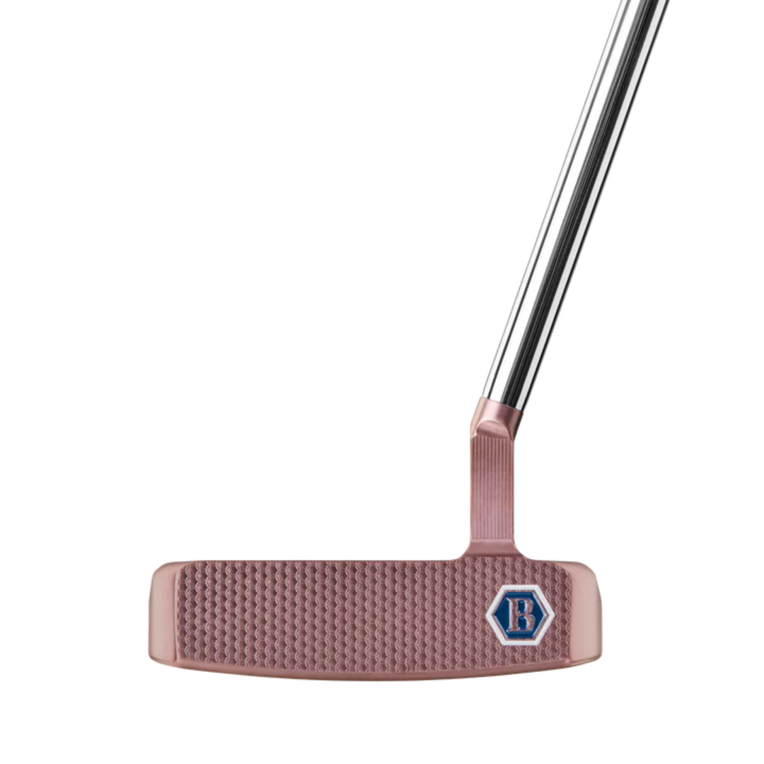 Re-introducing one of the most compact mallets ever designed by Robert J. Bettinardi, the Queen B 7 returns after 10 years to the 2025-2026 lineup. Based on feedback from the game's best players, the Queen B 7 was re-engineered to be Bettinardi’s first symmetrical mallet. The QB7 is meticulously crafted with precision-milled shoulders that seamlessly blend into the rounded flange, providing a timeless Bettinardi appearance. Our trademark one-piece milled Crescent neck ensures effortless setup at address and is ideal for players with a moderate arc in their putting stroke. The Mini Honeycomb™ Face Milling enhances the putter's performance with an 8% smaller machining tool, resulting in the softest Honeycomb™ face to date, while beautifully highlighting the unique design. Each head in the Queen B Series is completed in a new Royal Rose PVD finish and crafted from one-piece milled 303 Stainless Steel, the same high-quality material favored by Bettinardi Tour staffers worldwide. This exquisite craftsmanship provides exceptional durability, responsiveness, and a solid feel, ensuring supreme performance on the green.