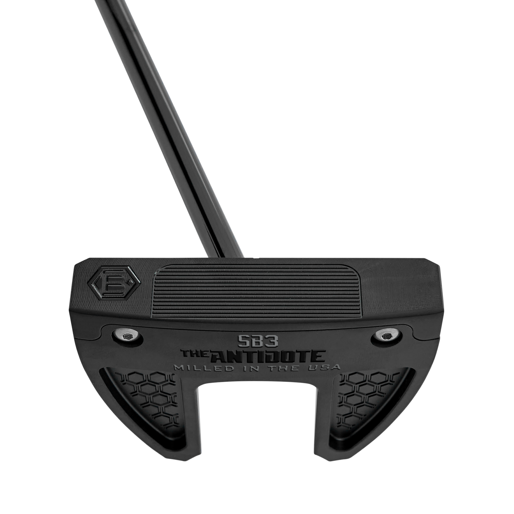 Blacked out for Black Friday! Each year, we unveil a limited run of production putters, completely murdered out for this exclusive event. Our Antidote SB3 LH features an all Black PVD finish. Comes paired with a shiny black PVD shaft, black and gray Bettinardi Hex B standard grip, and matching Antidote Center Shafted Mallet Headcover. Limited quantities available.