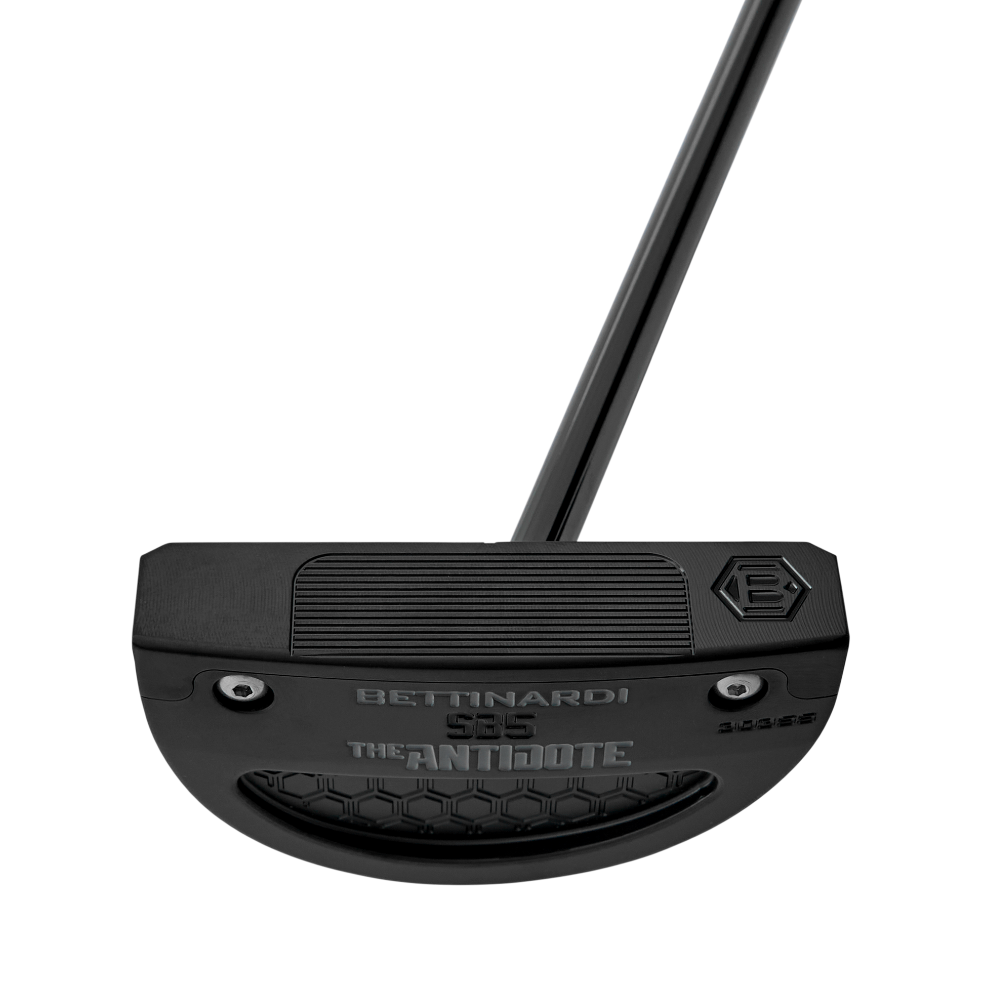 Blacked out for Black Friday! Each year, we unveil a limited run of production putters, completely murdered out for this exclusive event. Our Antidote SB5 features an all Black PVD finish. Comes paired with a shiny black PVD shaft, black and gray Bettinardi Hex B standard grip, and matching Antidote Wide Blade Headcover. Limited quantities available.