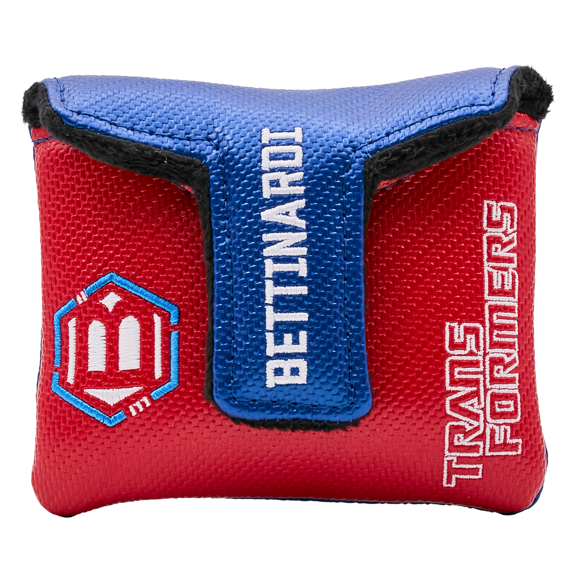 Autobots, roll out! This mallet putter headcover features a detailed Autobot symbol on a blue carbon fiber base. The back side features our Bettinardi x Transformers Hex B with a Transformers wordmark on a red carbon fiber base. Show your loyalty to the Autobots and protect your putter with this Autobot Mallet Putter Headcover.