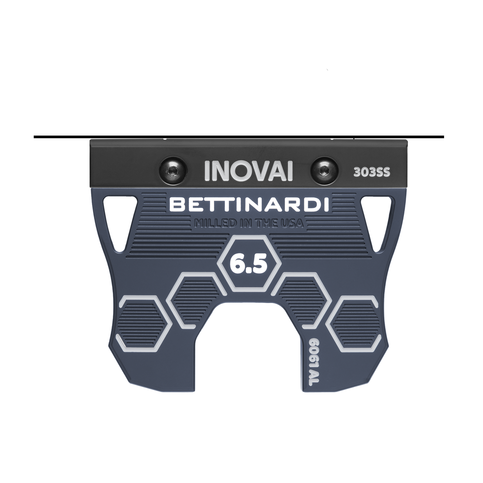 Previously seen only as a limited-run putter, Sam Bettinardi took the INOVAI 6.5 and gave it a sleeker, more compact design while preserving the immaculate fangs that form its signature hexagonal cutout. The fangs are shaped to optimize the putter’s MOI (Moment of Inertia), with triangular vents that distribute additional weight to the perimeter. The sleek lines of the 6061 Aluminum back piece and triple sightline offer perfect visual cues for simple setup and effortless alignment. The 303 Stainless Steel front piece features our Roll Control ™ face milling, our proprietary groove design which offers a soft feel and is designed to get the ball into a true roll faster.