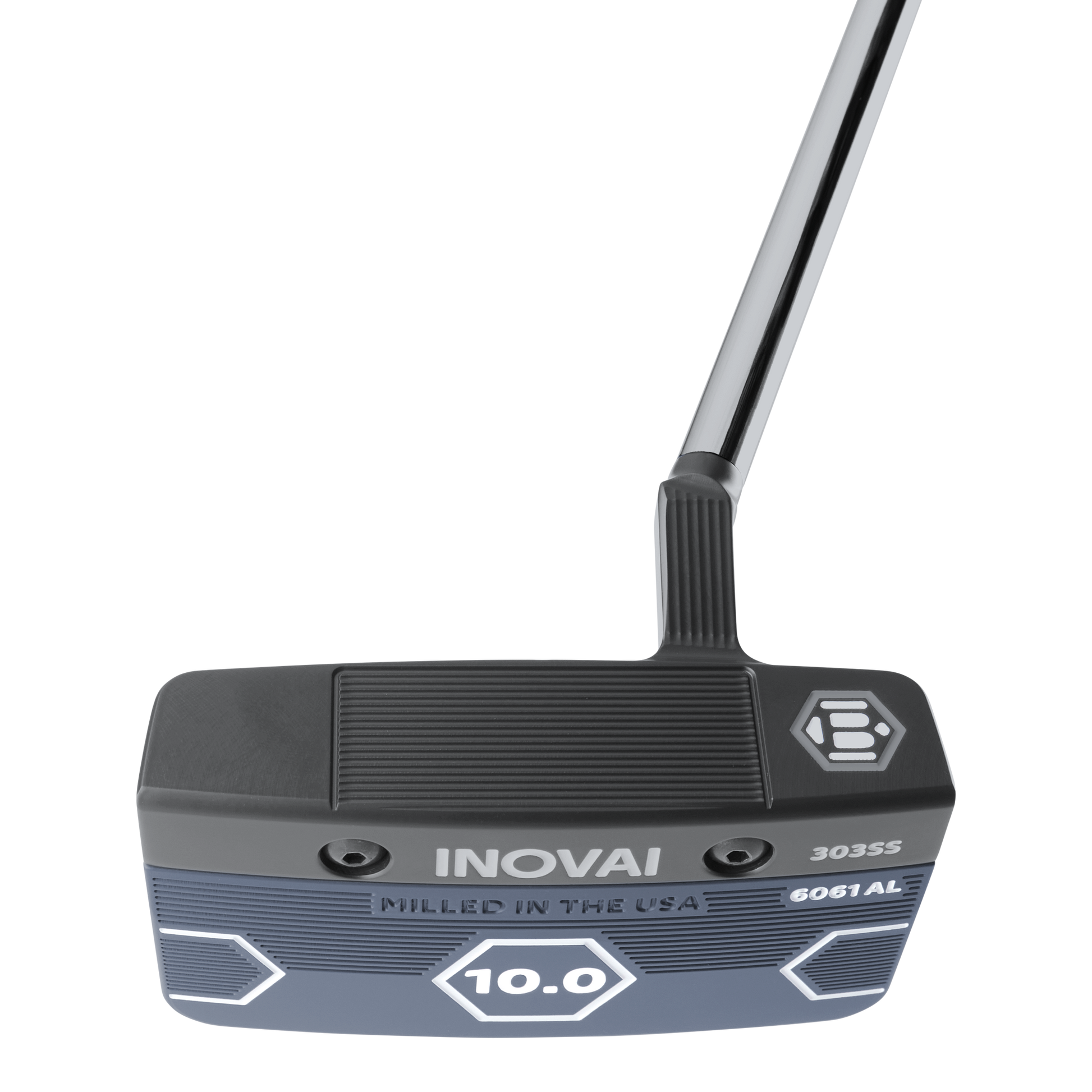 The INOVAI 10.0 combines the best of blade and mallet in a sleek, compact head that offers a brand-new look to the INOVAI Series. While resembling a wide-body blade, the two-piece construction of 303 Stainless Steel and 6061 Military-Grade Aluminum was engineered to shift weight toward the rear and perimeter of the putter, to give it the high MOI that players seek in a mallet. The simple shape of the body creates ideal visual cues at address, and the smooth flange is detailed with double sightlines for ease of setup and alignment. The 10.0 is perfect for players seeking to transition from a blade putter to a high-performance MOI mallet or players looking for a mallet with a more compact profile.