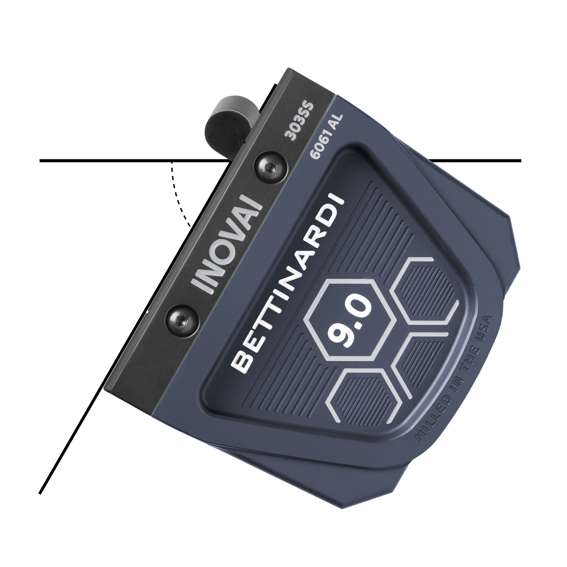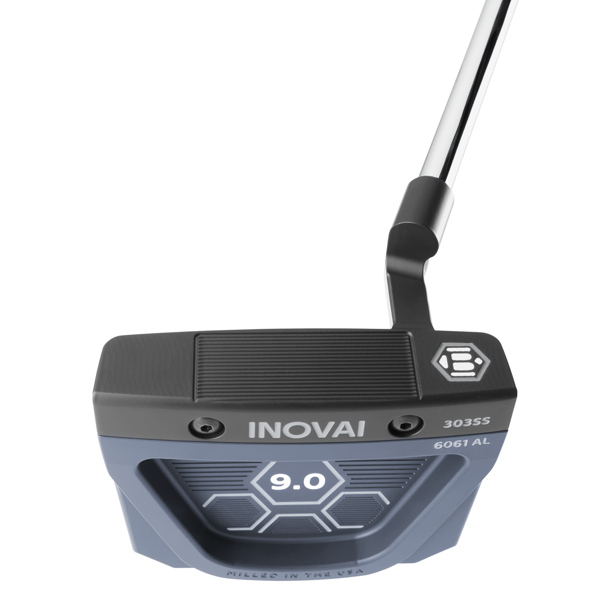 The all-new INOVAI 9.0 was designed by Bob Bettinardi to bring a full-body high-MOI mallet to the INOVAI Series. The wide body creates ideal visual cues with long sightlines, a tapered shape, and innovative stability wings for added control. Precision machining techniques create a seamless connection between the body and the face, which features a wide topline for ease of alignment. The sole was designed with a Fixed Depth Port which maximizes MOI by distributing weight to the perimeter, while also improving the Center of Gravity, resulting in a mallet with a remarkable balance of stability and control. The 303 Stainless Steel front piece with Roll Control™ face milling offers our softest feel and audible feedback preferred by Tour players with our proprietary groove design that promotes forward roll at impact, reducing skid and sidespin.