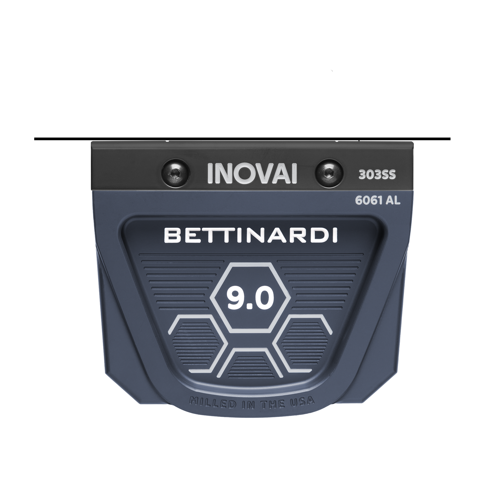 The two-part design of each INOVAI putter consists of a 303 Stainless Steel face piece and a 6061 Military-Grade Aluminum back. This combination of premium metals balances each INOVAI model while the golfer experiences ultimate feel and control.