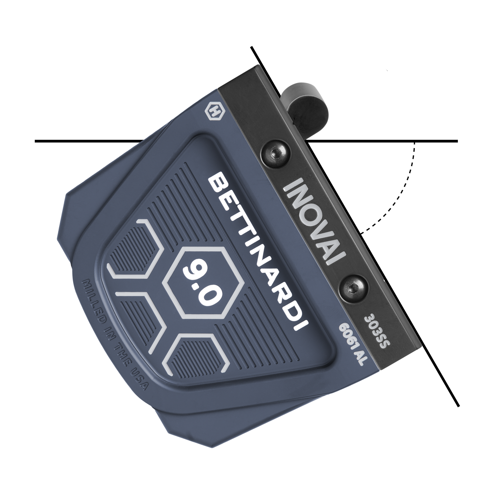 The two-part design of each INOVAI putter consists of a 303 Stainless Steel face piece and a 6061 Military-Grade Aluminum back. This combination of premium metals balances each INOVAI model while the golfer experiences ultimate feel and control.