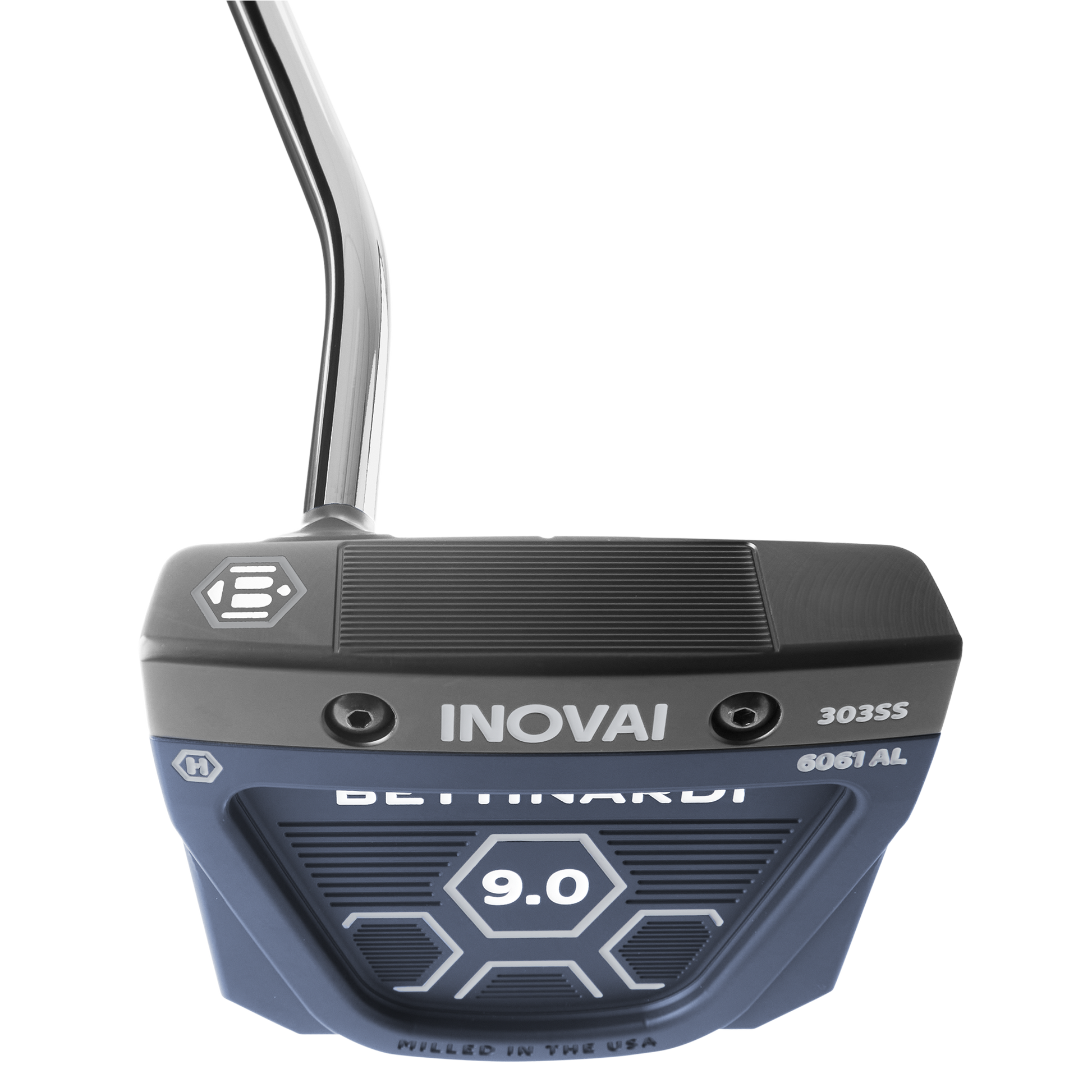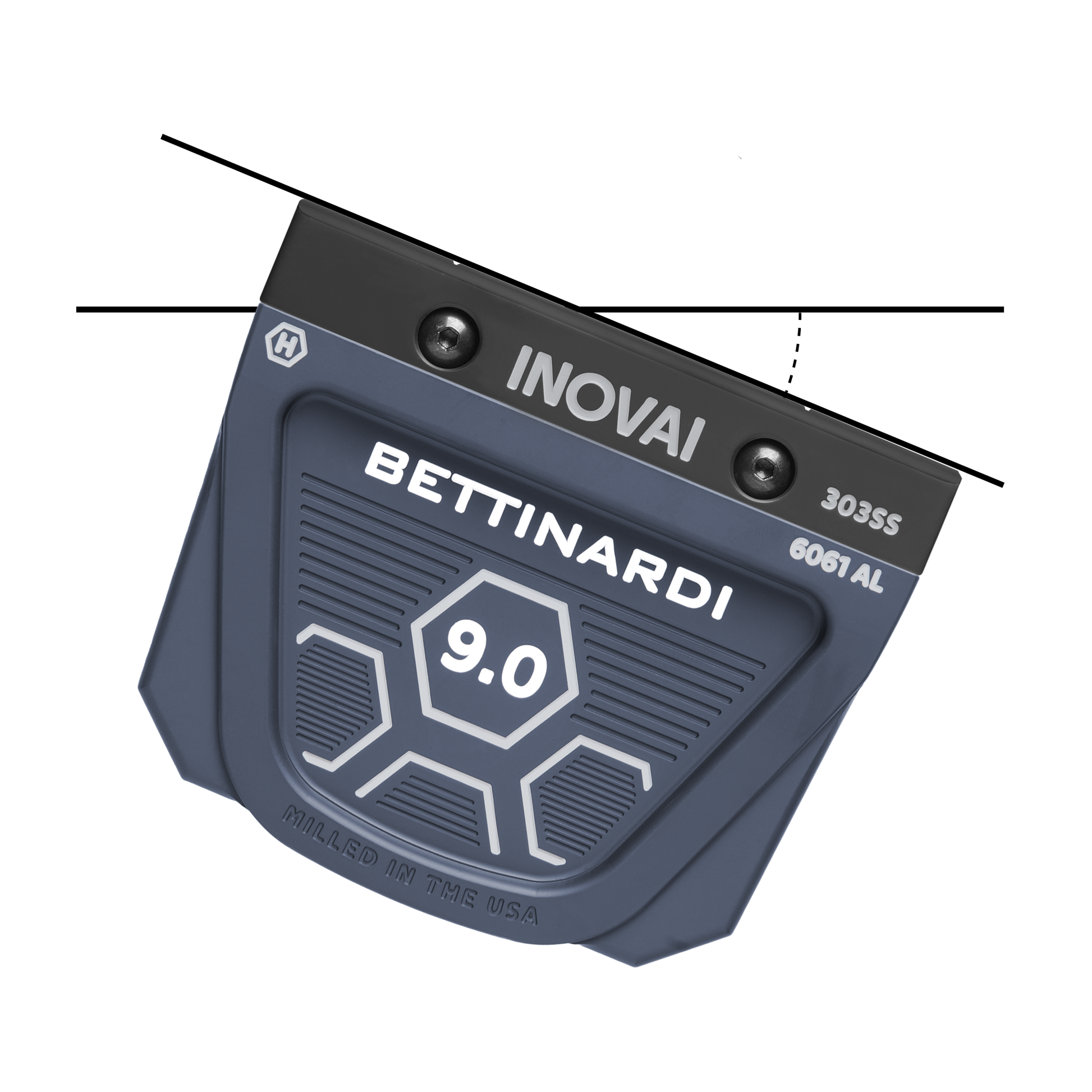 Bob Bettinardi designed the INOVAI 9.0 CB to offer a full-body high-MOI mallet as a counterbalance. The wide body creates ideal visual cues with long sightlines, a tapered shape, and innovative stability wings for added control. Precision machining techniques create a seamless connection between the body and the face, which features a wide topline for ease of alignment. The sole was designed with a Fixed Depth Port which maximizes MOI by distributing weight to the perimeter. The INOVAI 9.0 CB has more weight in the sole which is counterbalanced by a longer shaft. This combination increases MOI and stability, giving the golfer unparalleled control. The 303 Stainless Steel front piece with Roll Control™ face milling offers our softest feel and audible feedback preferred by Tour players with our proprietary groove design that promotes forward roll at impact, getting the ball into a true roll faster.