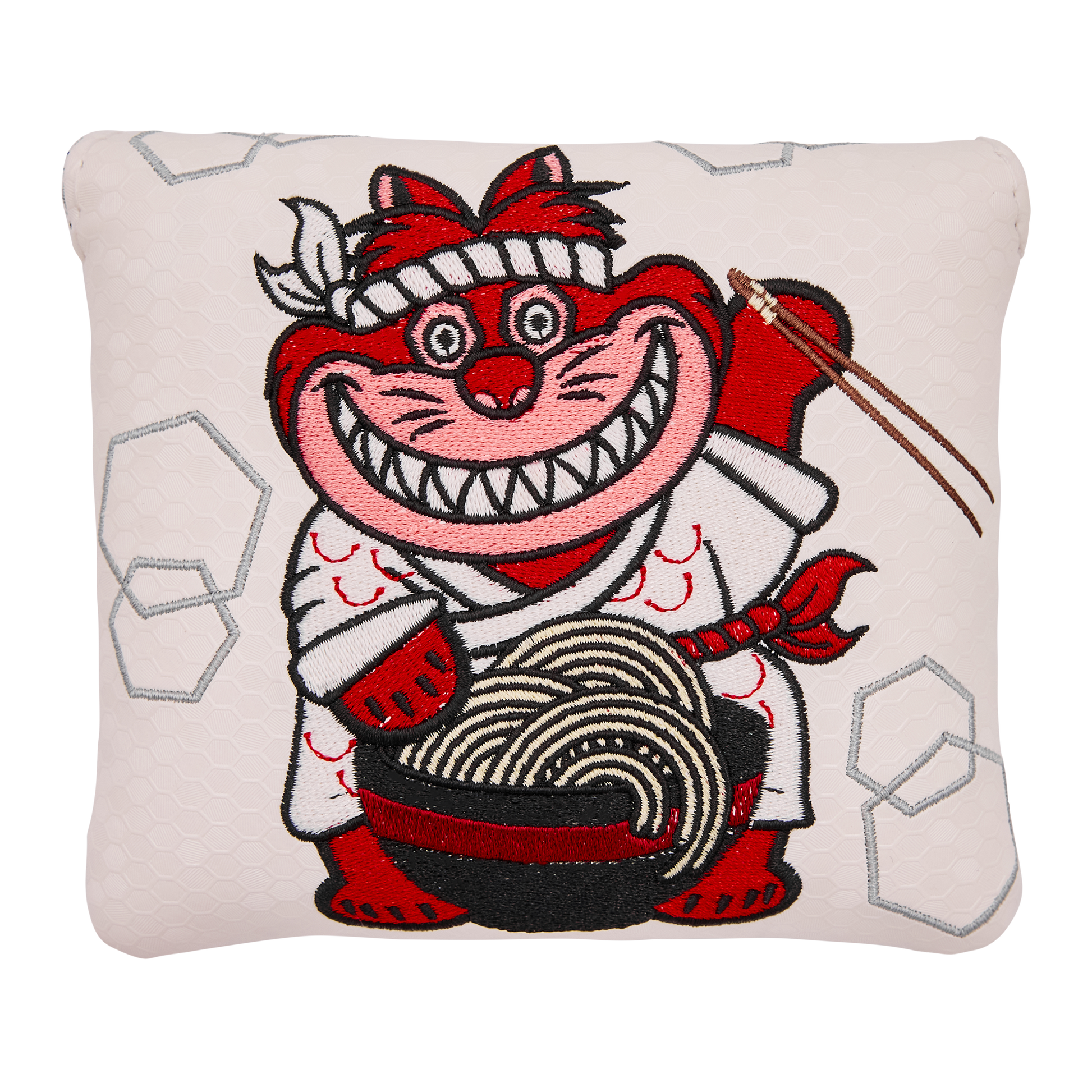 Thank You! The Lucky Ramen Cat is ready to dive into his bowl of noodles! This mallet headcover is stitched in a red, black and tan colorway on a white hex base. Finished with a black plush interior with a magnetic interior. Limited quantities are available. Limit 1 per person. Good luck!