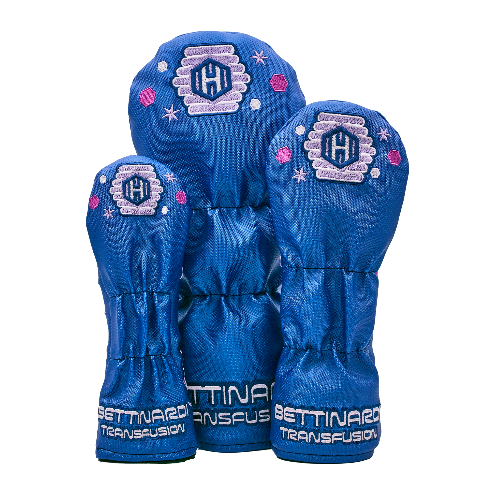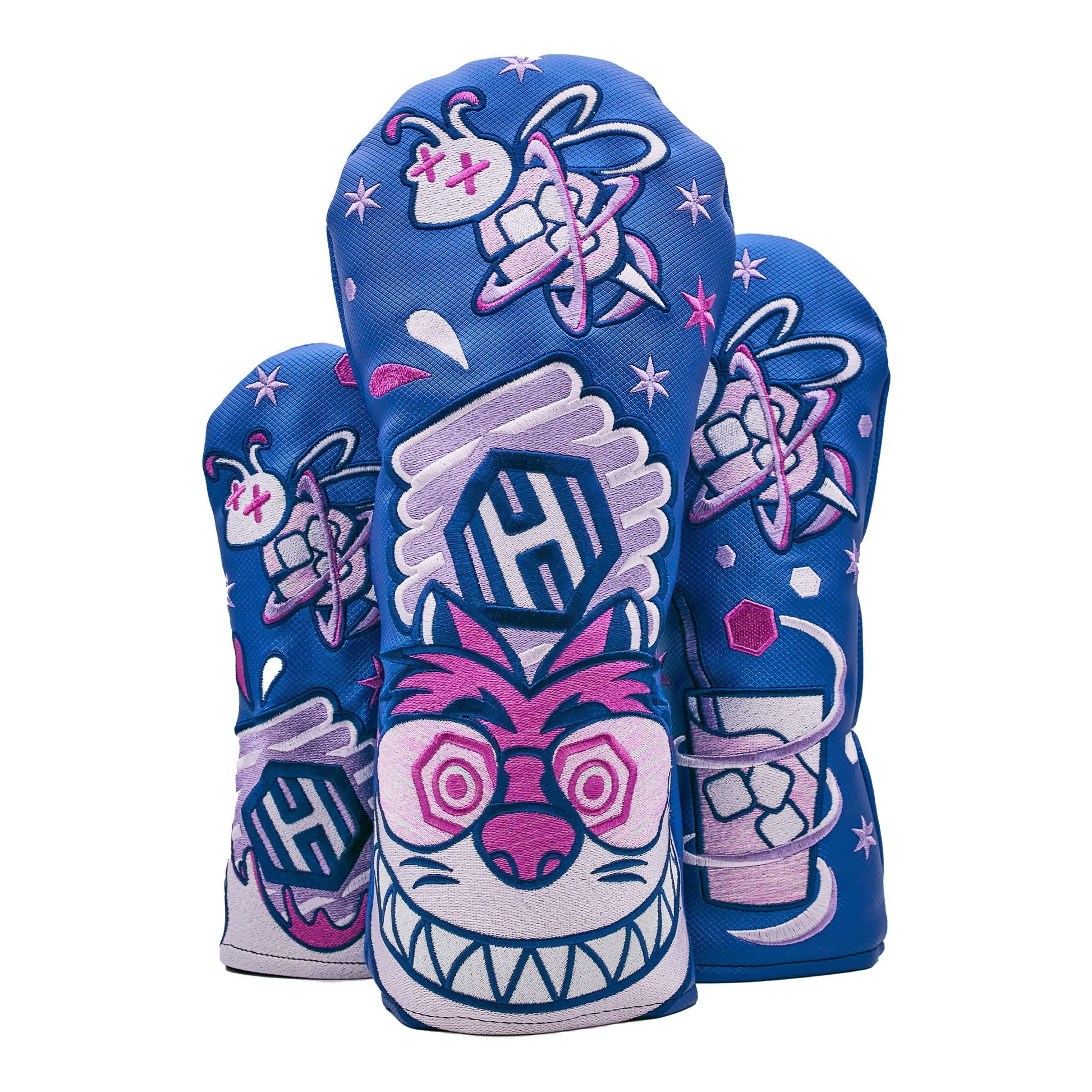 The Transfusions™ are flowing this Summer! This woodset is the feel-good set of the summer. It features our Atomic Transfusion™ Stinger, Transfusion™ Sunglasses Fat Cat, and of course, our bottomless Hive pitchers to keep the party going. Stitched on a True Blue Edge Vinyl base in a Mass Transfusion™ colorway, this wood set is finished with a black plush interior to keep your clubs protected and looking fresh. Includes a driver cover, 3-wood cover, and hybrid cover. Limited quantities are available. Limit 1 per person. Good luck!