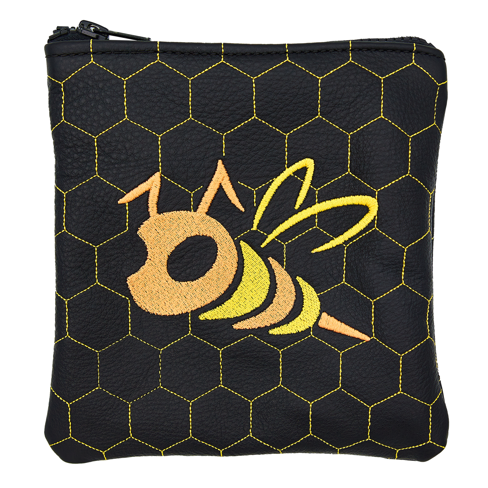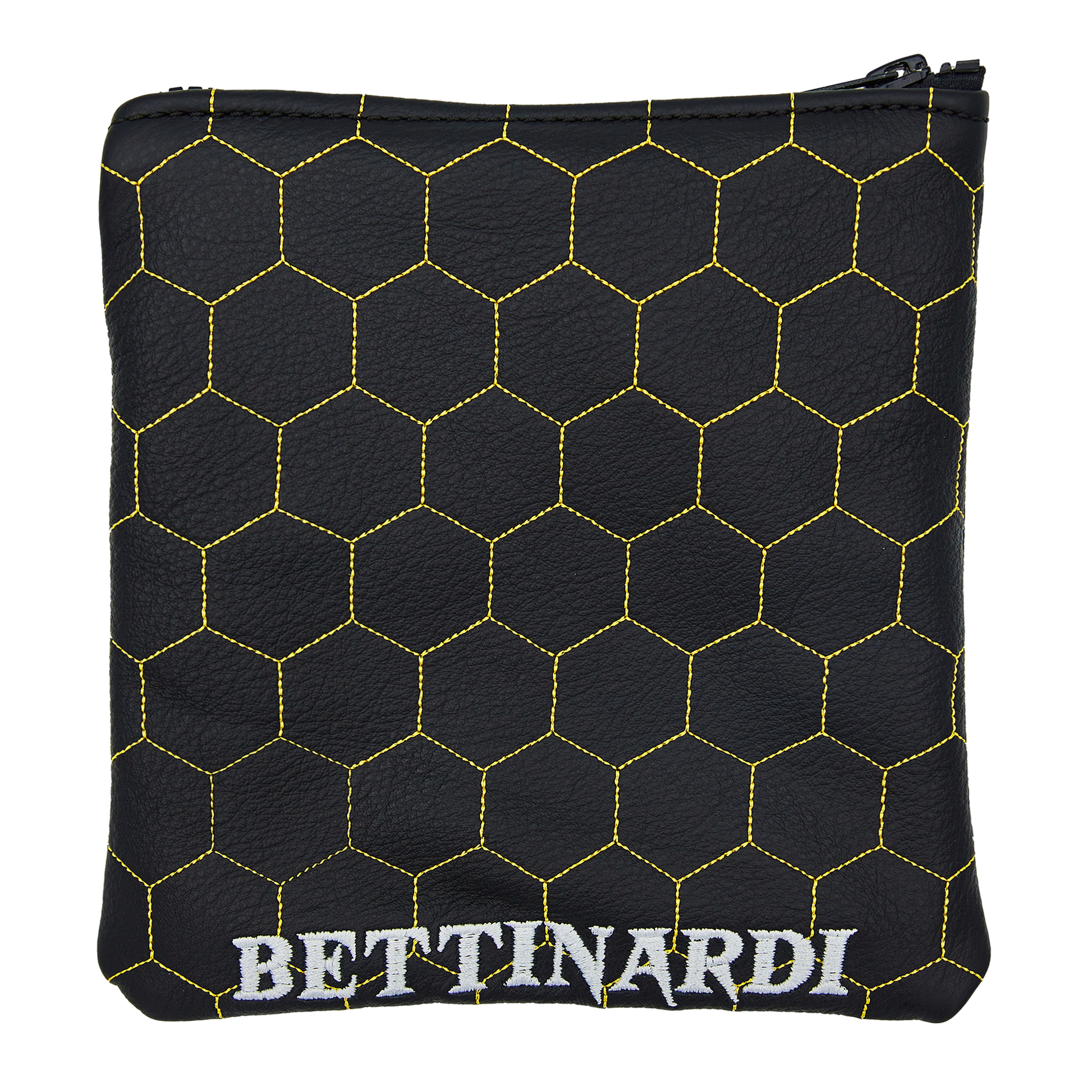 This stealthy Stinger Bee valuables pouch is featured in a jet black vinyl with a stitched hexagonal pattern throughout. It includes an embroidered Bettinardi wordmark on the back. The pouch is lined with soft plush and includes a black zipper at the top. Keep all your belongings in one place with this classy pouch, made in Tinley Park, Illinois.