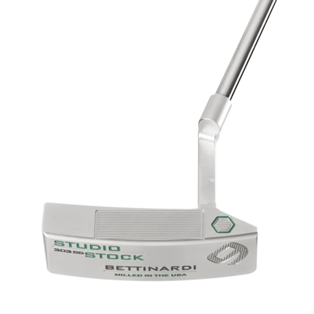 Each Studio Stock putter comes paired with a Tour Grade shaft, custom Castleton green Lamkin Sink Fit Grip, and dual-constructed Castleton green and black perforated Studio Stock Series headcover.